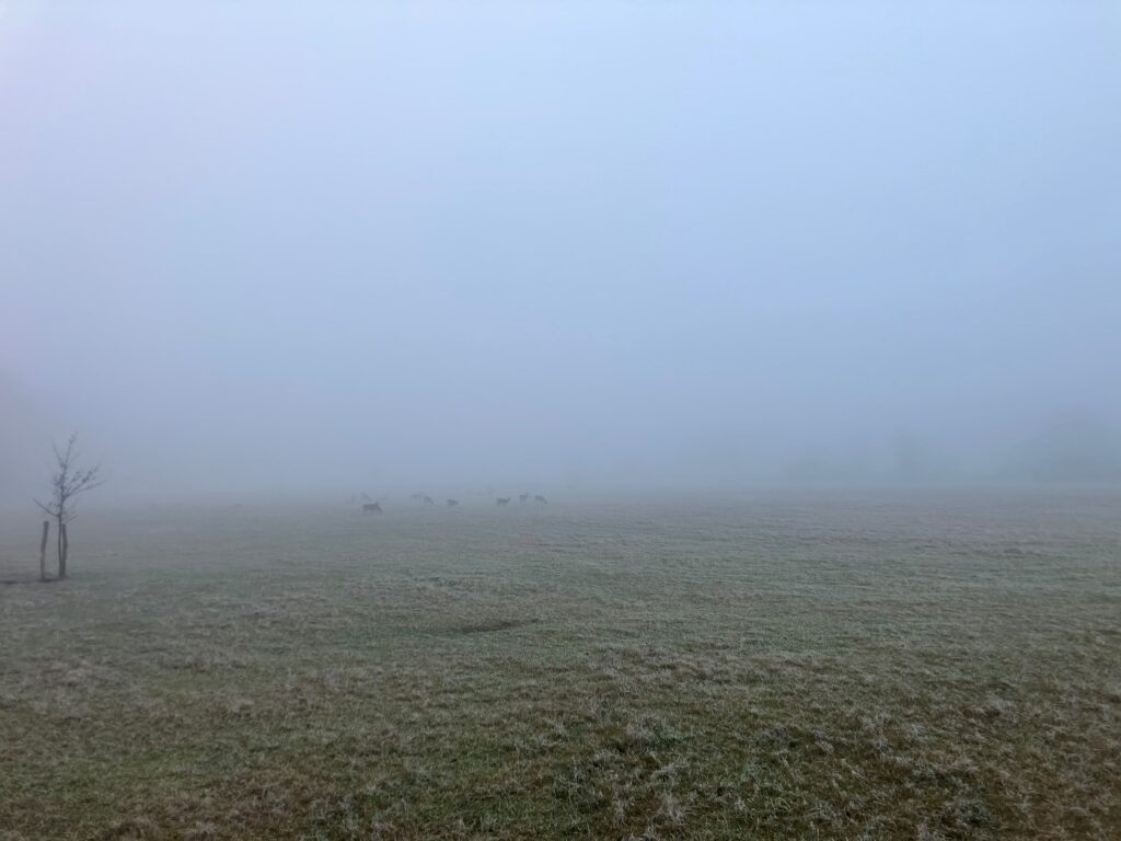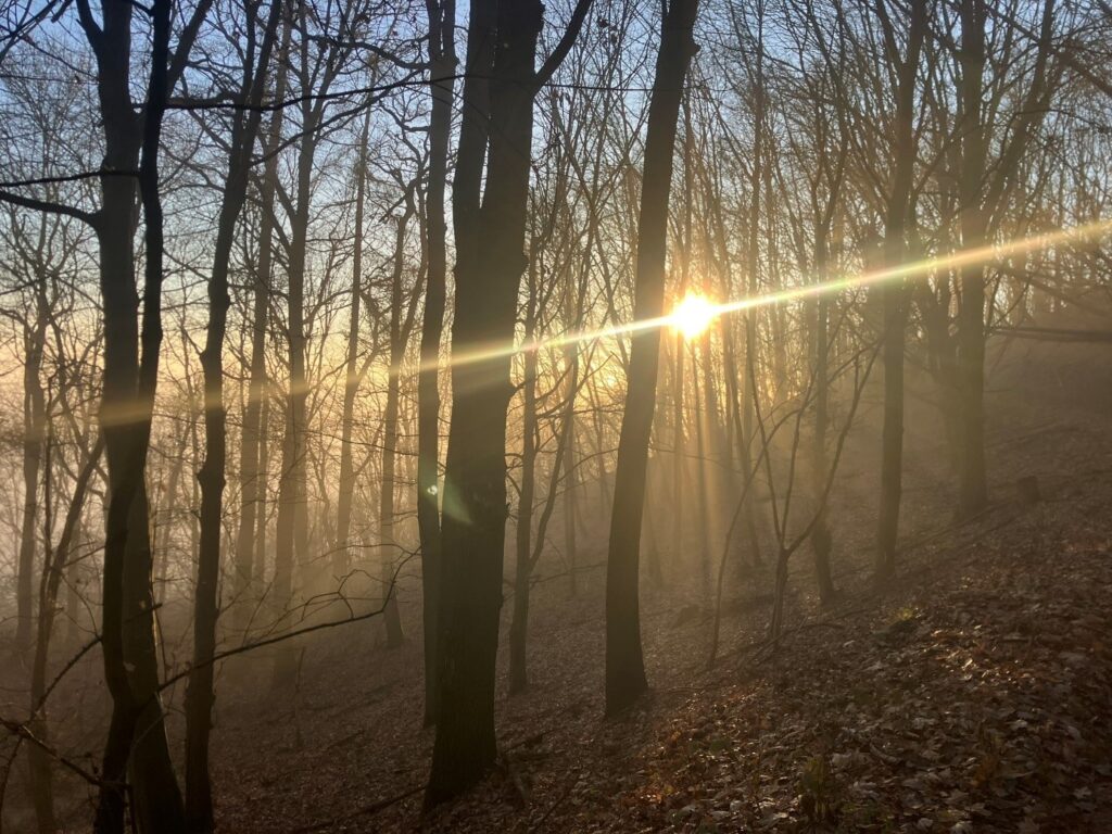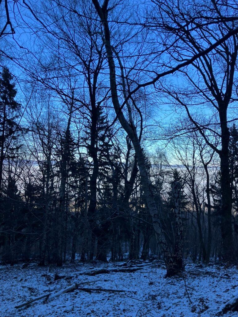 Jak tak kráčím z kopce dolů a pod nohama se mi kameny mění za měkčí větve, mech a listí, cítím radost, lehkost a klid. A jsem samozřejmě přesvědčená, že to nemá nic společnýho s 5μg, který na mě celou dobu vůbec nepůsobí. Loučíce se se sluncem pomalu sestupujeme zpátky do bílé tmy, až nás celá pohltí.